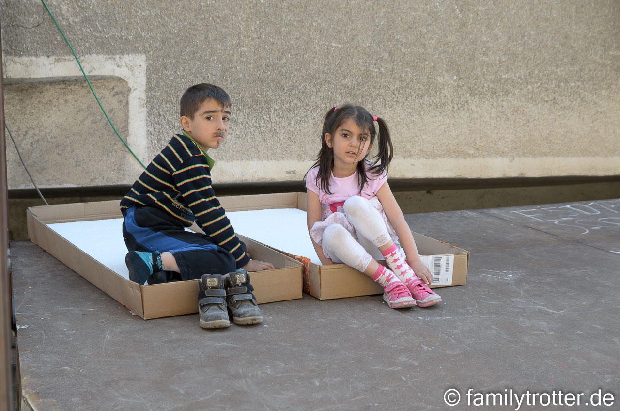 Die Autobahn ist zu unserer Überraschung mautpflichtig. Dummerweise ist uns der Rial ausgegangen, und Geld lässt sich häufig nur in größeren Städten wechseln. Doch an keiner der vier Mautstellen haben wir Probleme ohne zu zahlen durchzufahren. Unangenehm aber angemessen aus Respekt ist nur, dass wir vor jeder Mautstelle das Auto stehen lassen müssen, um vorher den Dienstleistenden unsere Situation zu schildern. In diesen 5 Minuten heizt sich der Fußboden vom Asphalt und dem laufenden Motor (Er sollte laufen, weil die Gefahr besteht, dass der Turbolader gerade bei diesen Temperaturen im Stand nach langen und schnellen Fahrten durchbrennt.) so stark auf, dass wir trotz Bodenisolierung weder barfuß treten noch auf ihm sitzen wollen. Und das ist jetzt nichts für Sicherheitsfanatiker, wie wir Deutschen es sind, sondern für Pragmatiker: Auf längeren Fahrten spielt Nikita mit Estha auch auf dem Fußboden. Ohne Abstriche bei der Sicherheit sind solche Distanzen mit einem einjährigen Kind nicht zu bewerkstelligen.