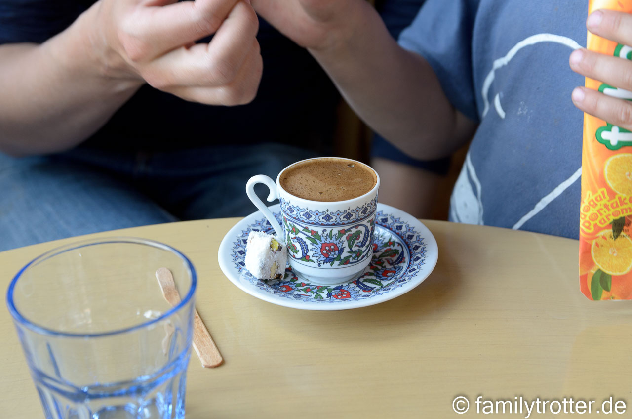 Es geht weiter Richtung Osten, nach Balıklı Kaplıca, der langersehnten heißen Quelle mit seinen Doktorfischen. Und wahrlich, die Fische docken sofort scharenweise an. Die Bäder sind auch hier nach Geschlechtern getrennt, der Eintritt ist zu der Zeit kostenlos, ansonsten nicht teuer (5 TL, 2,20 EUR ?). Für Elias und Estha ein tolles Erlebnis.