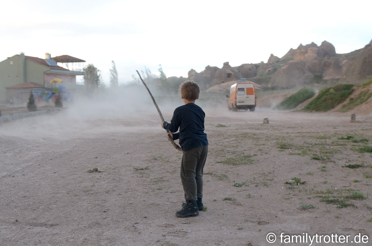 Uns treiben, ja hetzen zwei Umstände weiterzufahren. Das ist der Termindruck, zu Elias Einschulung sechs Wochen später in Berlin zu sein und die Erlösung, die uns der 5610 Meter hohe Damavand oder vielmehr das ihn umliegende Elburs-Gebirge mit dem nördlich anschließenden Kaspischen Meer verspricht. Wir sind erstmals in Vorurlaubsstimmung!