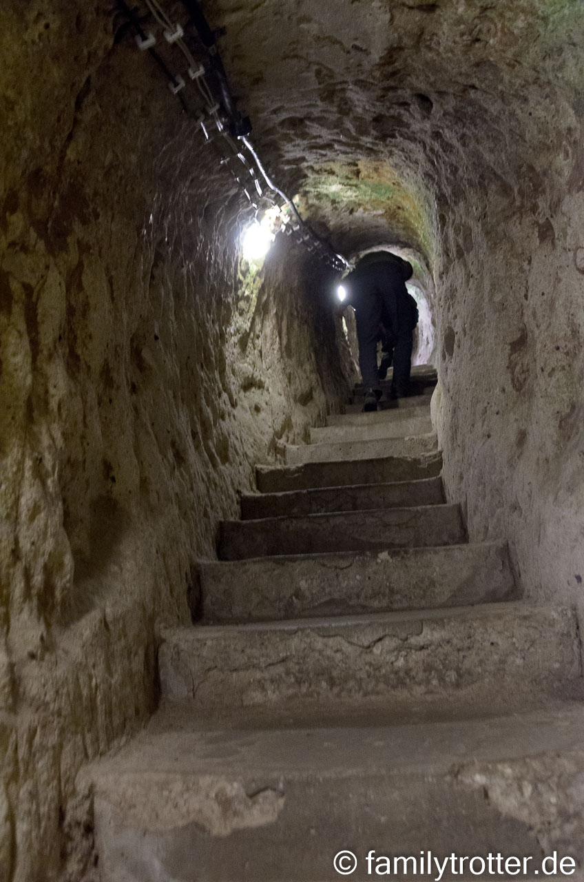 Wir lösen uns endlich von Ankara und steuern auf Kappadokien zu. Es gehört zum Pflichtprogramm aller Türkeirundreisenden. Der Tourismus hat bewirkt, dass Kappadokien einerseits teuer, andererseits infrastrukturell immer mehr ausgebaut wird. Darüber freuen wir uns, weil Nikitas Krankengeschichte noch kein Ende nimmt. Hier gibt es ausgezeichnete Krankenhäuser (Hastane). Trotzdem, die Region ist nett anzuschauen. Doch der obligatorische Ballonflug ist uns zu teuer (ab 200 Euro) und Kinder dürfen erst ab 7 Jahren mitfahren. Dafür leisten wir uns das andere Highlight, und das ist die unterirdische Stadt Derinkuyu. Wir steigen das dreidimensionale System bis zu 55 Meter hinab. Alles ist eng, die Gänge teilweise sehr niedrig – nichts für Klaustrophobiker. Derinkuyu ist nicht die einzige unterirdische Stadt. Es gibt noch weitere, doch soll sie die tiefste und größte sein. Sicherlich bietet Kappadokien noch mehr touristisches Potenzial (Mountainbiking, Wandern), doch uns bleibt immer weniger Zeit für unser großes Ziel, den Iran.