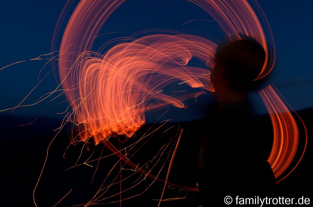 - Noch um 19 Uhr messen wir Temperaturen von 49,5°C an der Straße.