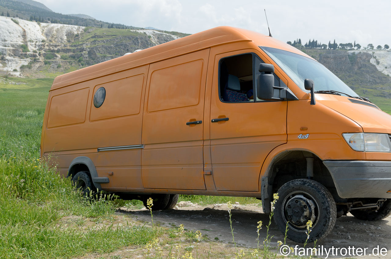 Abends sind wir schon in Griechenland und schlafen an einem Fluss mit Lagerfeuerstellen – ein perfekter Ort für uns und alle Wohnmobilisten. Nächsten Tag lernen wir die griechische Gastfreundlichkeit kennen. In einem Imbiss gibt uns der Besitzer einen aus. In einer heißen Quelle in Loutra Eleftheron hoffen wir zu entspannen, doch die Kinder machen uns einen Strich durch die Rechnung. Ihnen ist’s zu heiß. Trotzdem fühlen wir uns wie neugeboren. Wir können sogar unsere Wasserkanister mit frischem Bergquellwasser betanken. Nachts passieren wir die überraschend schwer bewaffnete Grenze zur Türkei und lassen uns bei einem kleinen Fischerhaus in einer geschichtsträchtigen Gegend, der Halbinsel Gallipoli zur Nacht nieder.