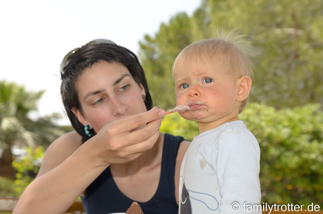 Esthas erster Geburtstag. Wirklich registrieren tut sie ihn nicht. Dafür wir und, wer hätt’s gedacht, die Türken. Estha avanciert zum Star. Sie ist ein Baby, hellhäutig, blauäugig und (!) sie ist (mittlerweile) hellblond. Für die Türken muss sie so etwas wie ein Engel sein. Als Beispiel: Wir spazieren am Hafen entlang, werden von unzähligen lächelnden, lachenden oder kichernden Augen verfolgt, werden angesprochen, Estha wird angefasst und beschenkt. Wir setzen uns in ein Café. Der Kellner weiß nicht, dass er ihr ihren ersten Lutscher bringt. Sie lernt schnell wozu so ein Ding da ist, als dann Estha auf den Arm genommen wird, zu weinen beginnt und wieder zu einem von uns flüchtet. Aber auch Elias bekommt häufig eine Süßigkeit zugesteckt, wird getätschelt, ist aber schon zu groß, zu wild.